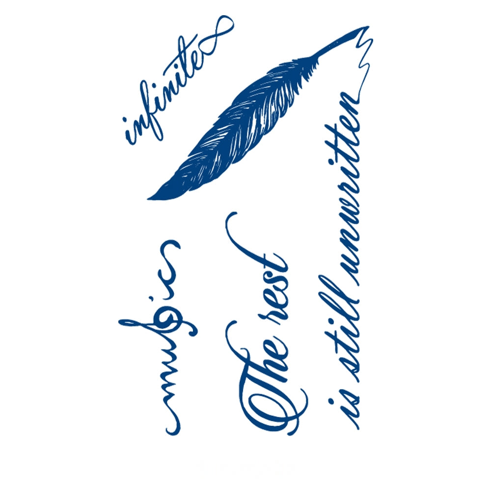 A flowing feather quill surrounded by inspiring script—celebrating creativity, music, and the limitless journey of life’s unwritten story.