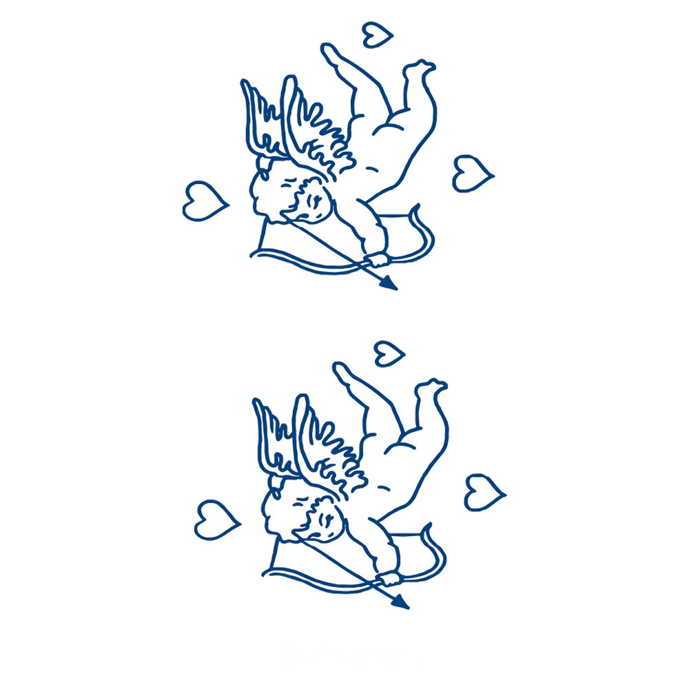 A cherub in flight, bow drawn with heart-tipped arrows—symbolizing romance, destiny, and the timeless magic of passion’s embrace.