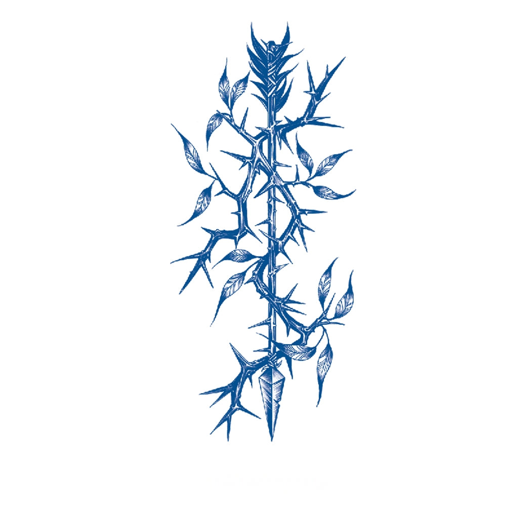 A striking design of intertwining thorns and leaves, embodying resilience, endurance, and the courage to grow even through adversity.