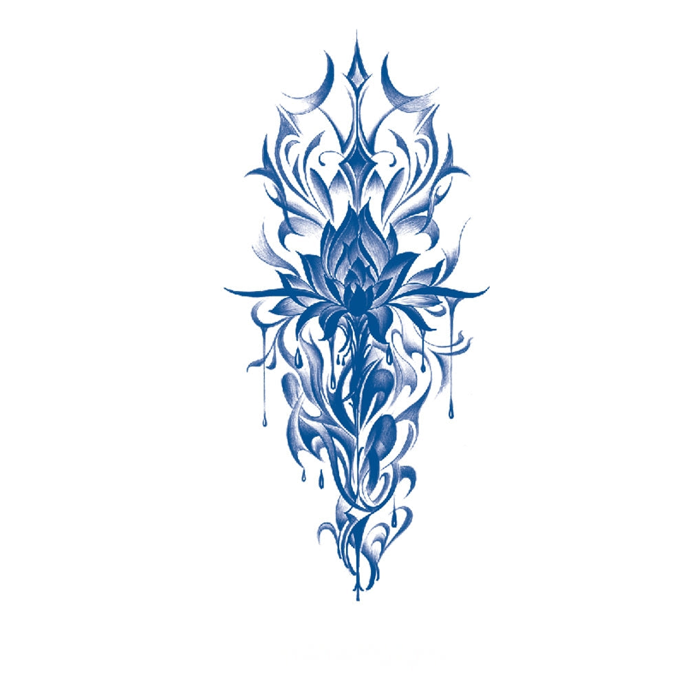 A lotus blooms in elegant symmetry, its petals unfolding amid flowing, flame-like patterns. Dripping details suggest both water and spirit, symbolizing rebirth, enlightenment, and the triumph of beauty over struggle. This design embodies peace, resilience, and the eternal journey toward inner light.