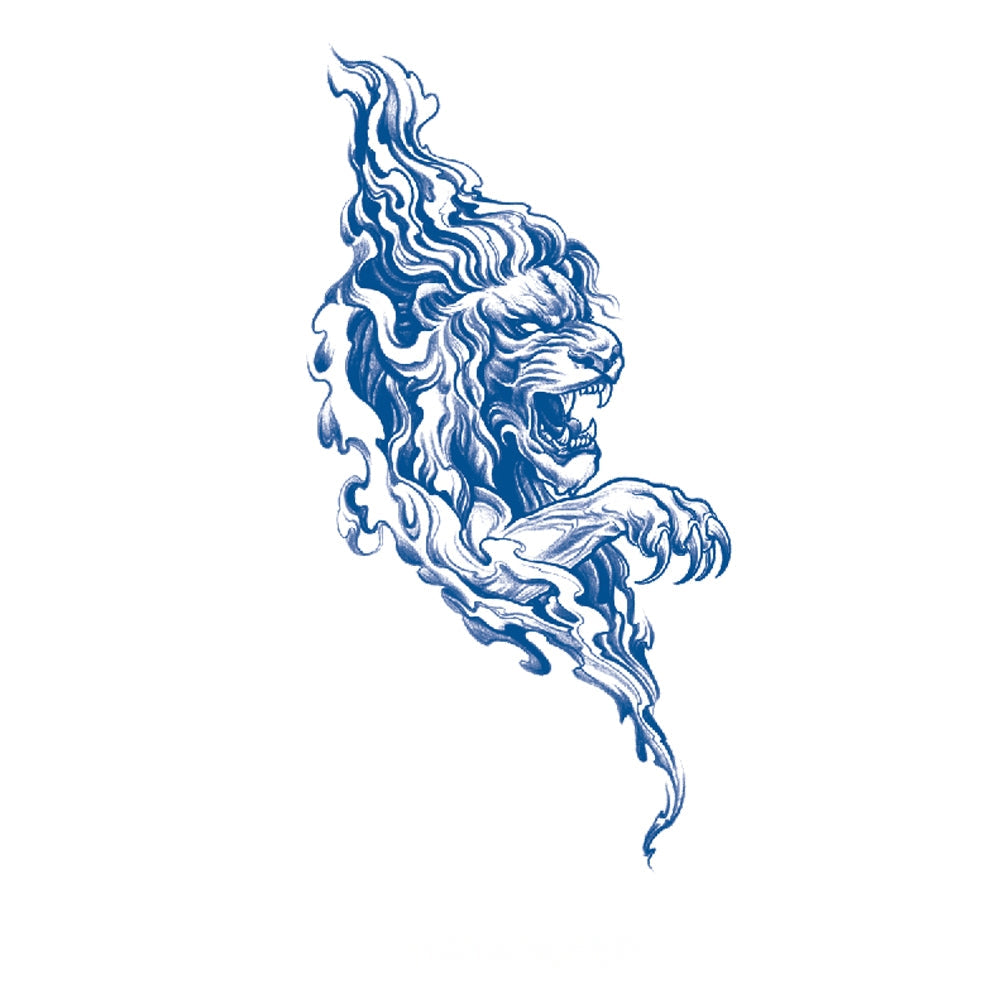 A lion engulfed in blazing flames, striking forward with ferocity—symbolizing courage, dominance, and the unyielding fire of the spirit.
