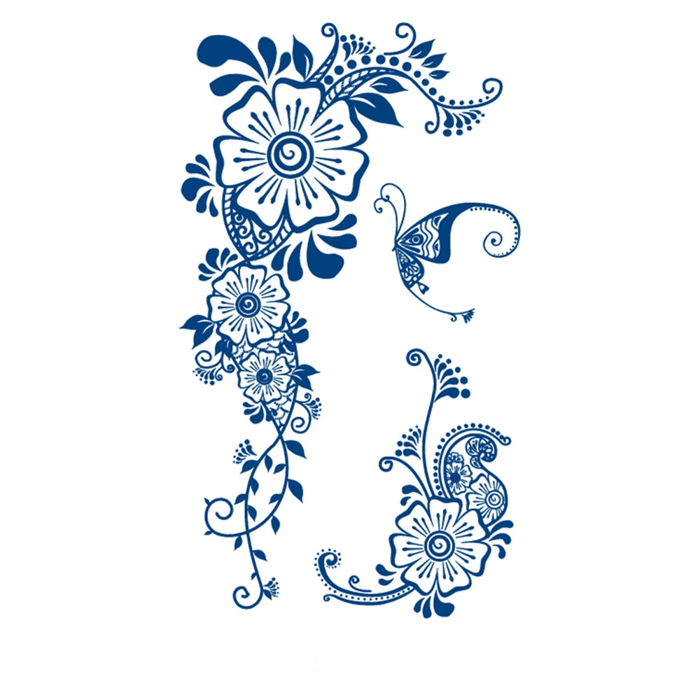 Floral patterns entwined with a delicate butterfly, symbolizing growth, transformation, and the harmonious balance between blossoming life and graceful flight.