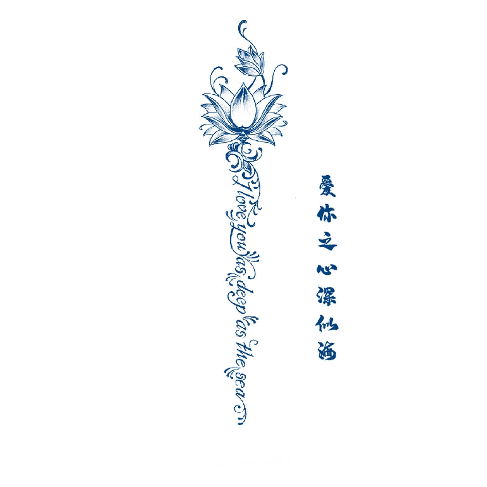 A lotus in bloom entwines with flowing script, symbolizing infinite love, depth of feeling, and the eternal strength of affection as vast as the ocean.