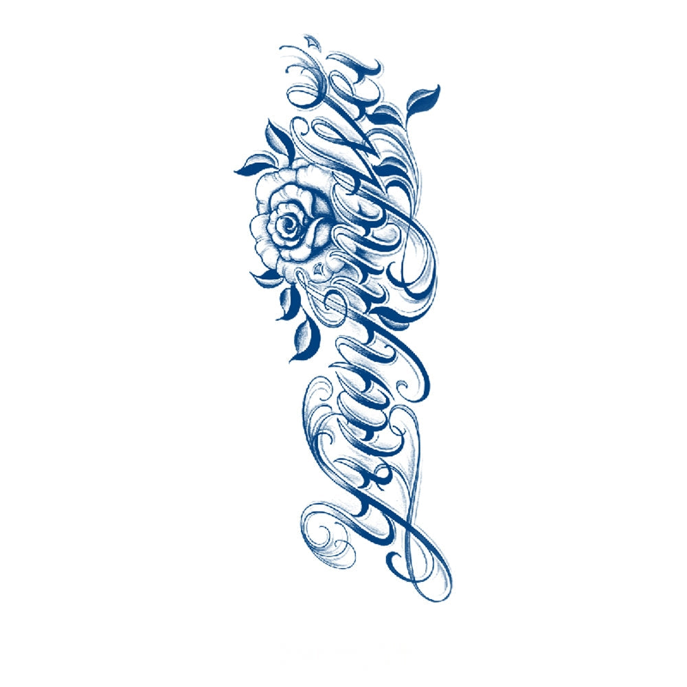 A blooming rose entwines with elegant swirling script, symbolizing passion, resilience, and the timeless harmony between love and artistry.