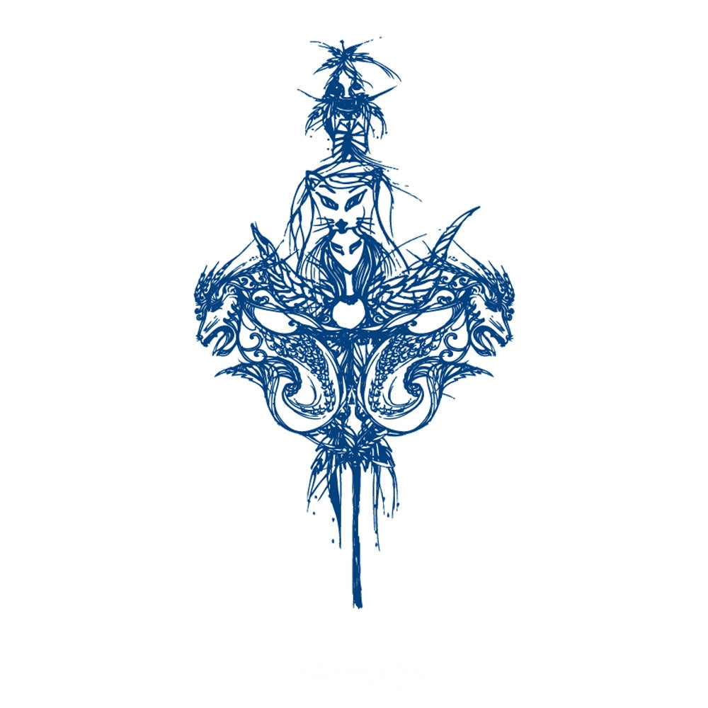 A fierce, symmetrical design featuring a central feline spirit flanked by twin dragon heads—blending elegance with raw power to symbolize guardianship, instinct, and the eternal harmony between strength and wisdom.