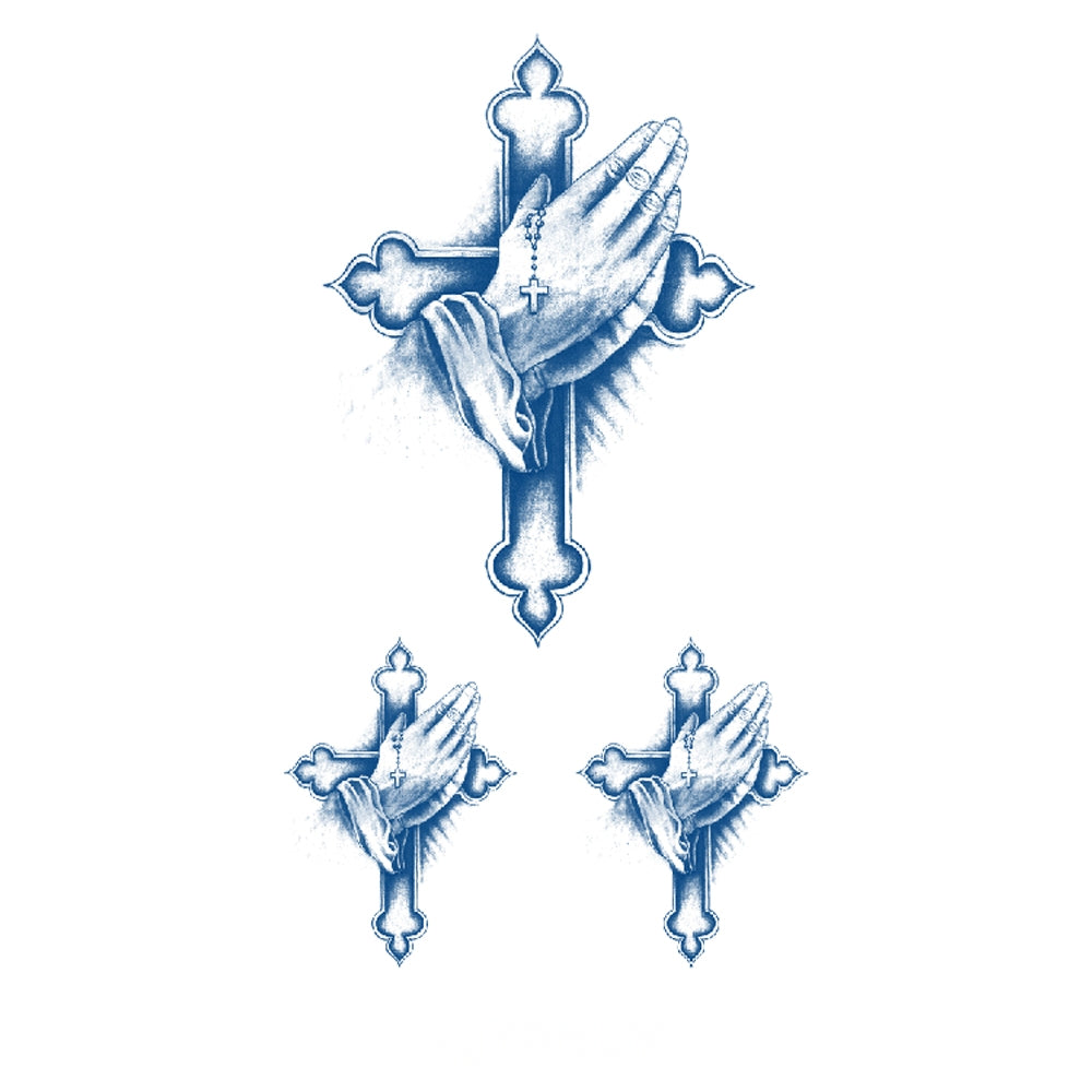 Hands clasped in prayer over a cross, adorned with a rosary—symbolizing faith, humility, and unwavering trust in divine guidance.
