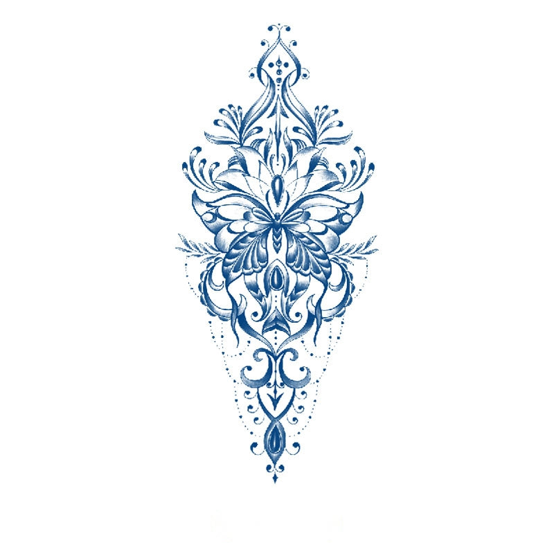 An intricate butterfly adorned with ornamental lotus and flowing mandala patterns, its wings merging into elegant flourishes—symbolizing transformation, balance, and spiritual liberation.
