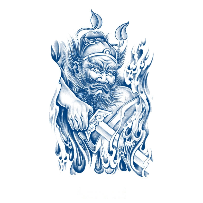 A fierce guardian grips his blazing sword, surrounded by roaring flames that embody his unyielding strength. This design symbolizes courage, loyalty, and the unstoppable will to protect and conquer.