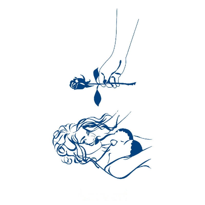 A sensual woman beneath a delicate hand offering a rose, symbolizing love, intimacy, and temptation. This design reflects the union of vulnerability and strength, beauty and longing.