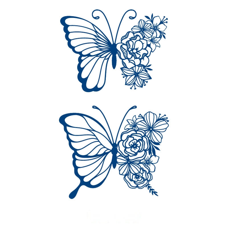 Butterflies merging with delicate blossoms, wings unfolding into floral patterns.