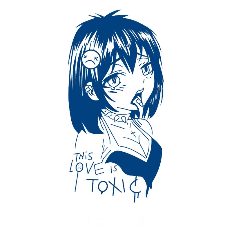 An anime-inspired design portraying allure with a dangerous edge, symbolizing passion, heartbreak, and the bittersweet chaos of destructive love.
