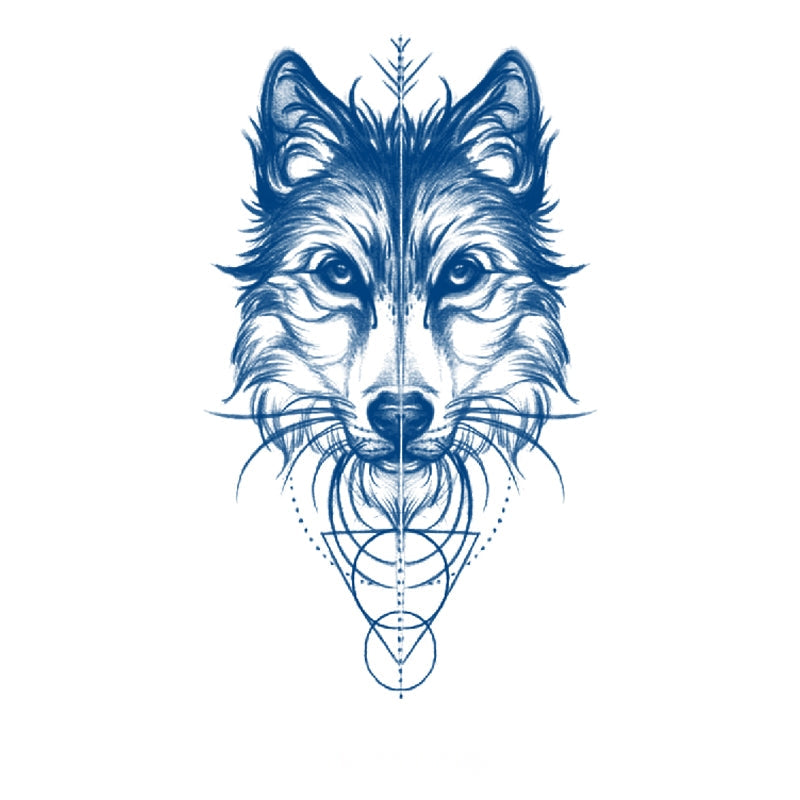 A wolf’s steady gaze aligned with sacred geometry, symbolizing guidance, intuition, and the unbroken bond between nature and spirit—an emblem of equilibrium and inner strength.