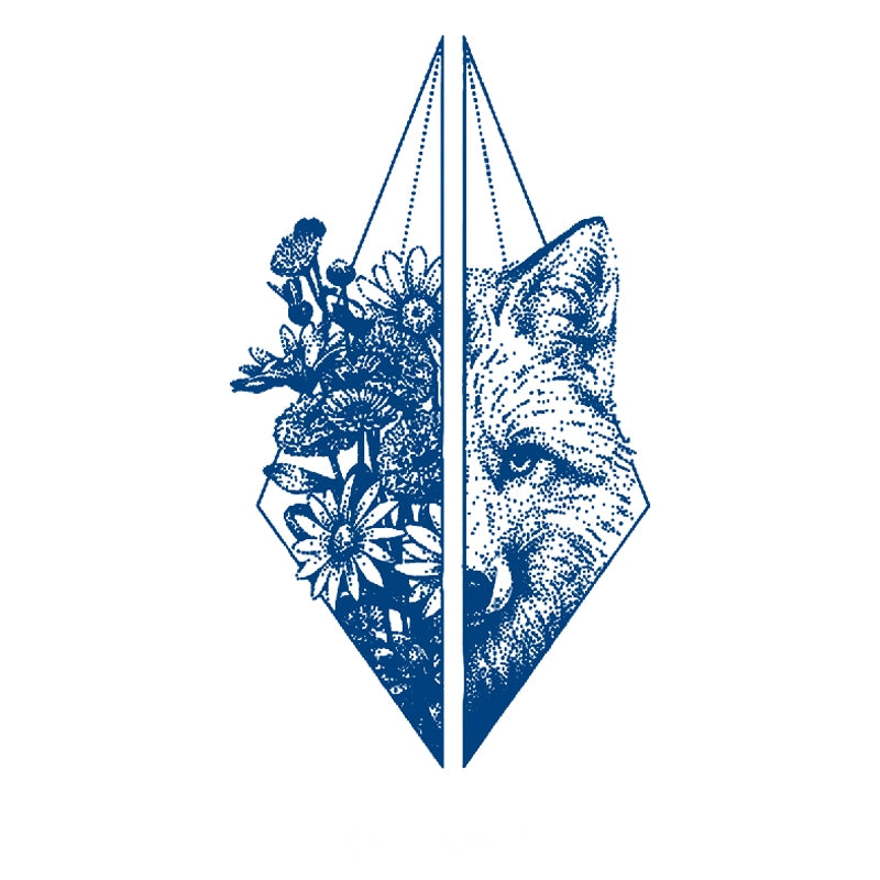 A wolf’s watchful face paired with flourishing blossoms, symbolizing instinct, harmony, and the coexistence of untamed strength and gentle growth.