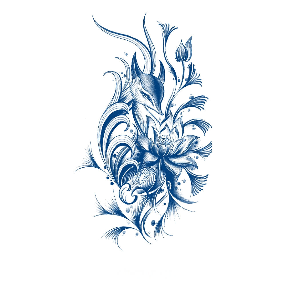 A mystical fox entwined with flourishing lotus petals and flowing tendrils—embodying transformation, hidden wisdom, and the delicate harmony between cunning and serenity.