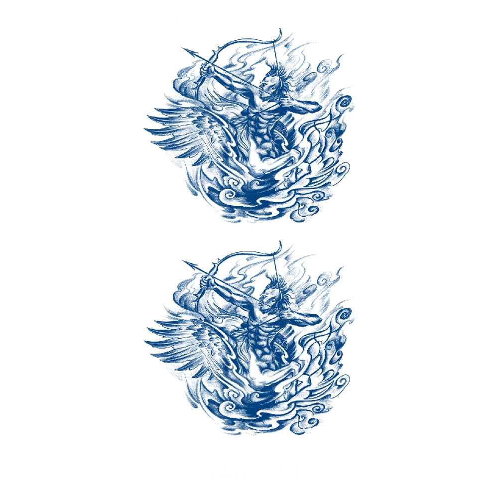 A celestial warrior with wings unfurled, bow drawn amidst swirling clouds and fire, embodying precision, courage, and the eternal pursuit of destiny across the skies.
