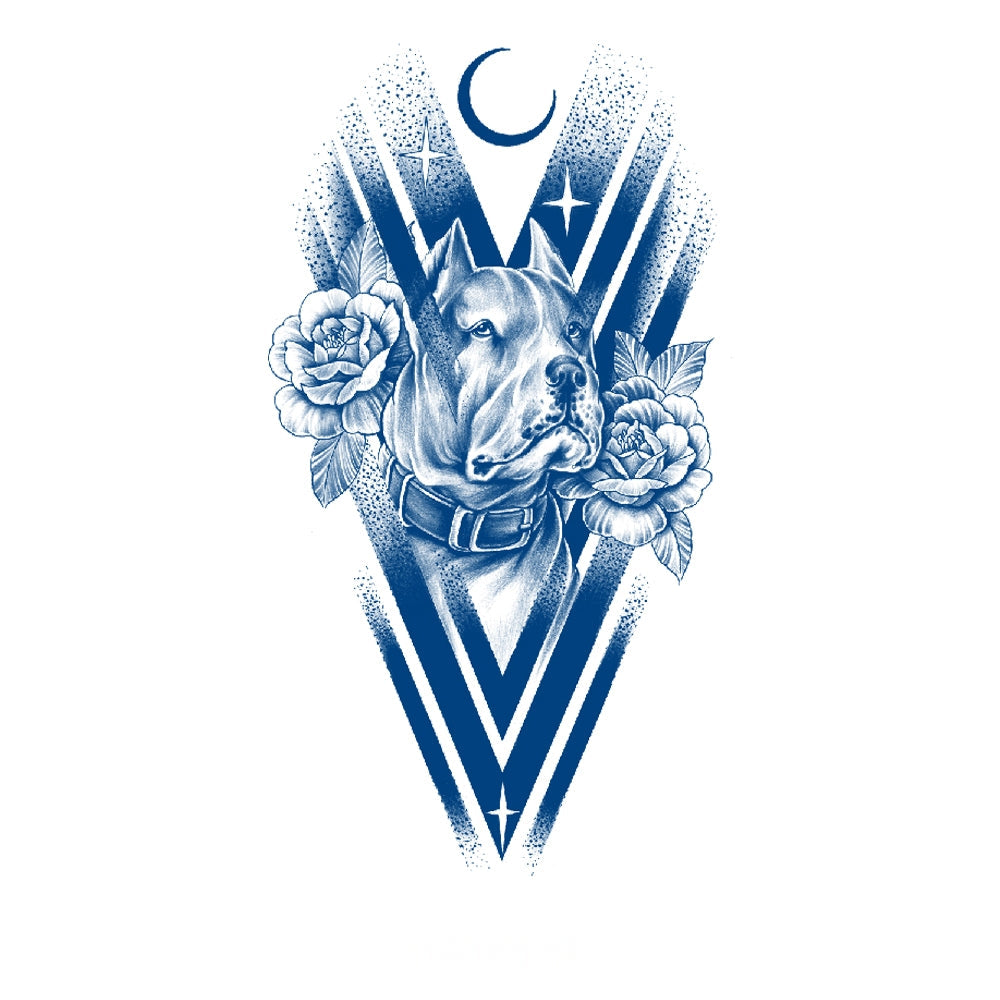 A noble dog framed by blooming roses beneath the crescent moon and stars, symbolizing protection, devotion, and the unwavering spirit that watches faithfully through both night and day.