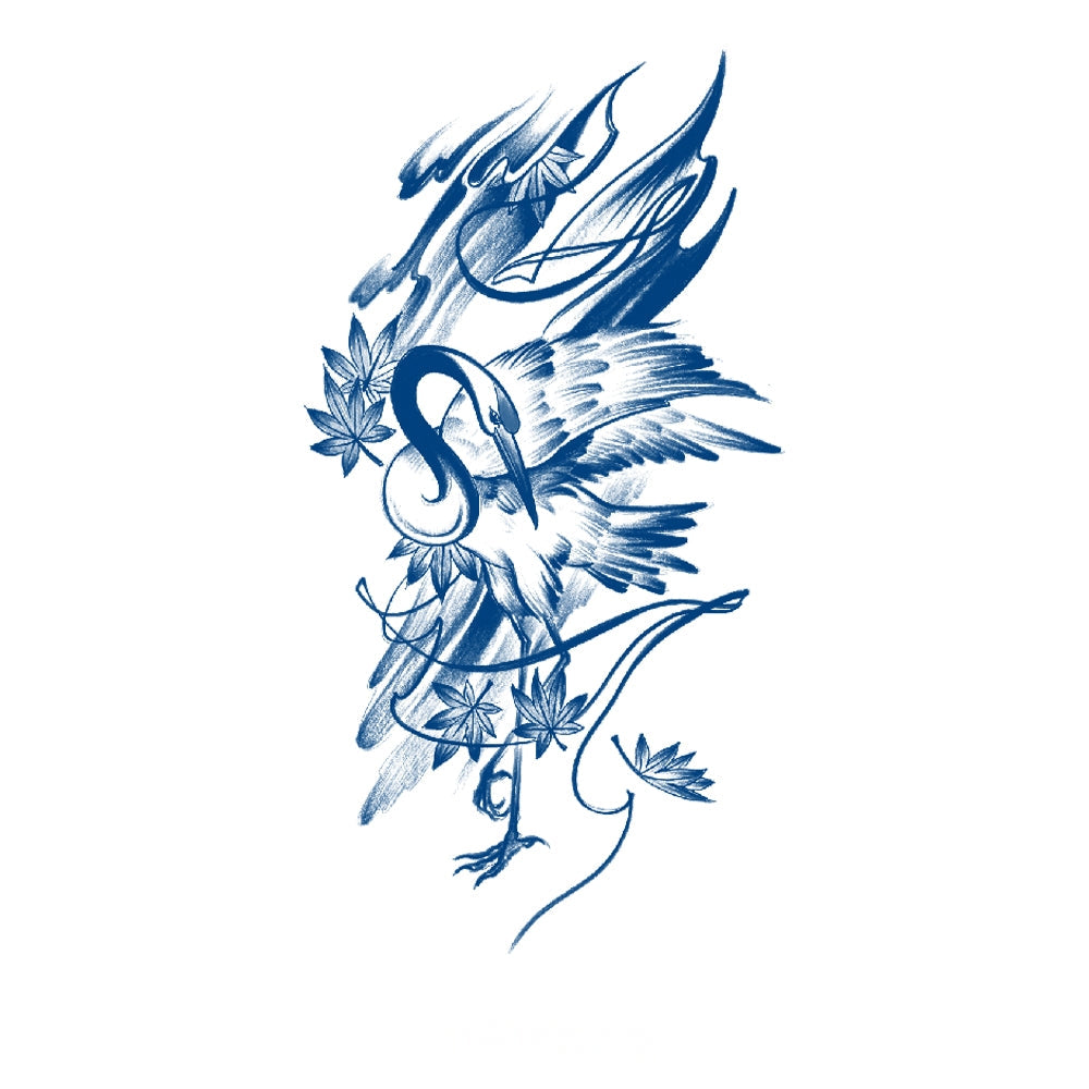 A graceful crane entwined with maple leaves, embodying the harmony between endurance and change—its poised stance and flowing feathers reflect resilience, dignity, and the quiet beauty of transformation.
