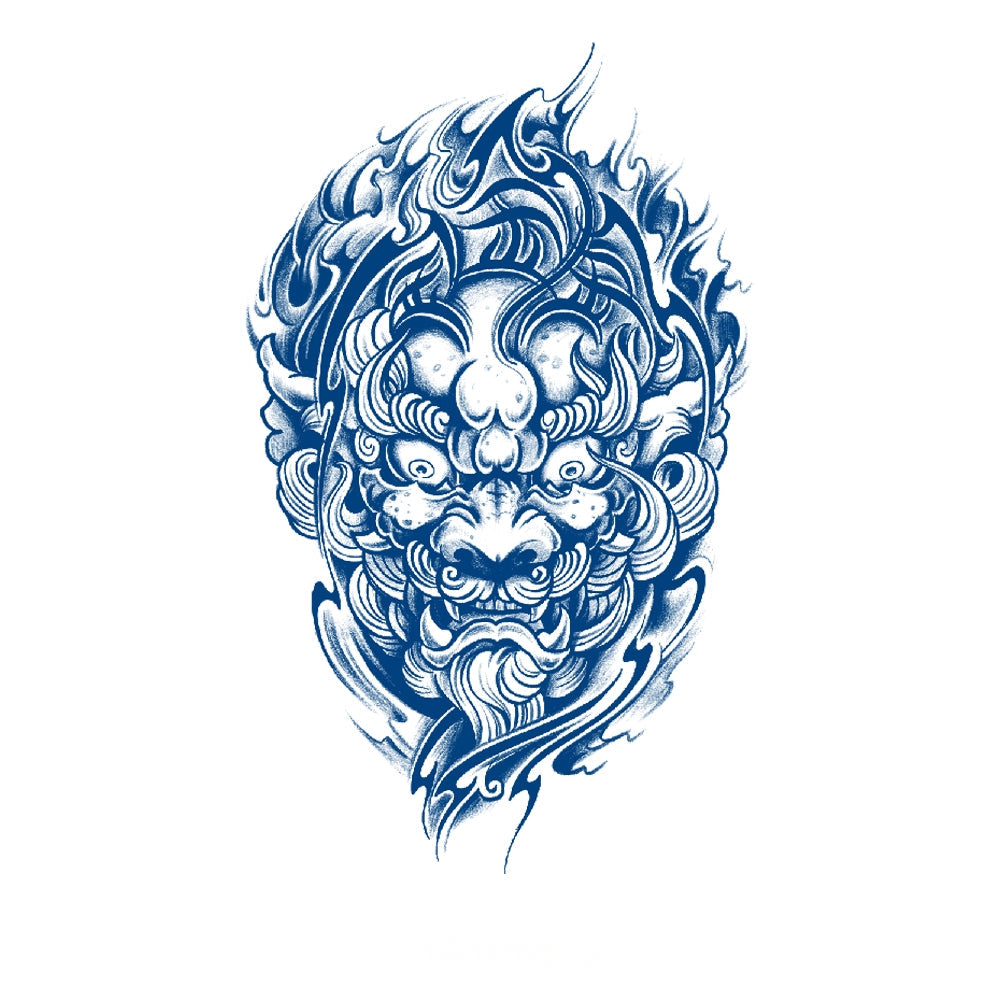 A fearsome beastly mask with fiery patterns and piercing eyes, symbolizing resilience, inner strength, and the power to ward off evil while standing as a timeless guardian of spirit and will.