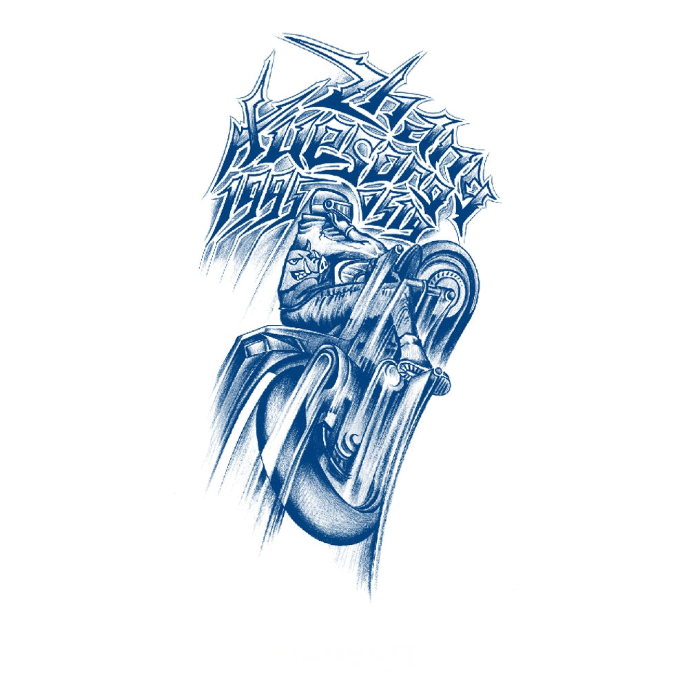 A fierce biker charges forward on a roaring motorcycle, cloaked in power and rebellion. The design embodies speed, freedom, and the untamed spirit of the open road.