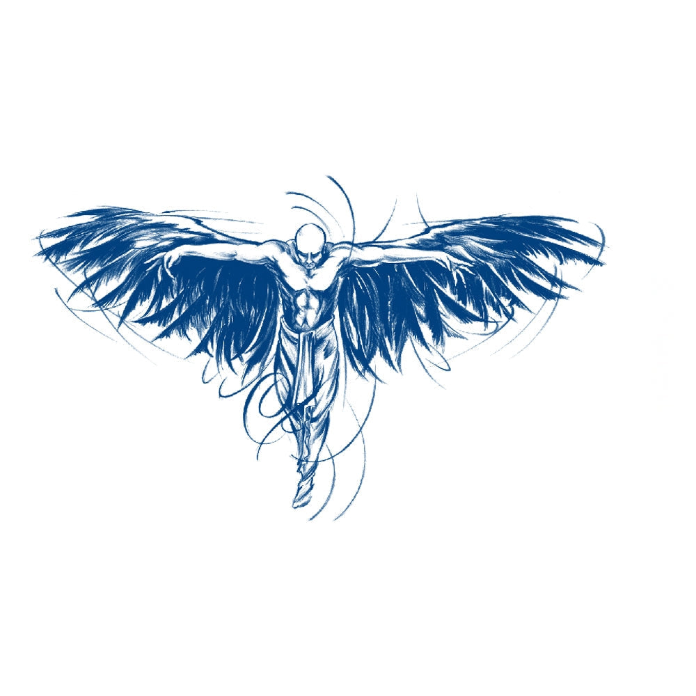A powerful figure with vast, shadowed wings outstretched, caught between ascension and descent—symbolizing freedom, sacrifice, and the eternal struggle between light and darkness.