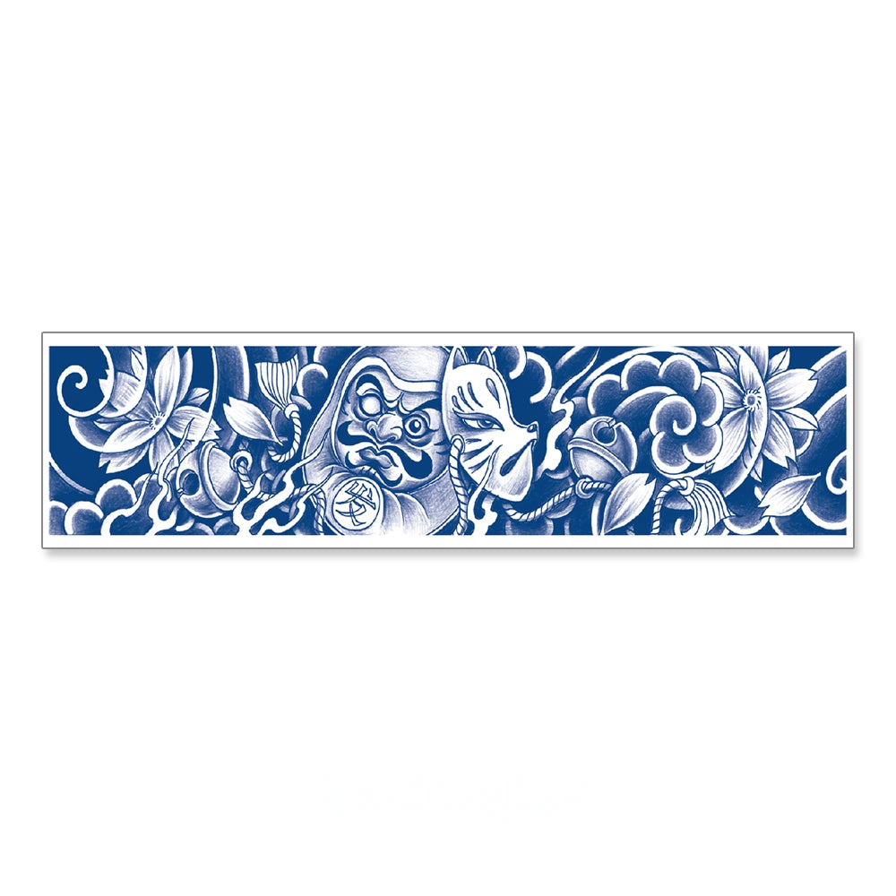 This tattoo design features traditional Japanese masks alongside lotus flowers and flowing smoke, symbolizing duality, transformation, and the mysteries of the human spirit. It embodies the balance between concealment and revelation, reminding us that identity and strength often lie beneath the surface.