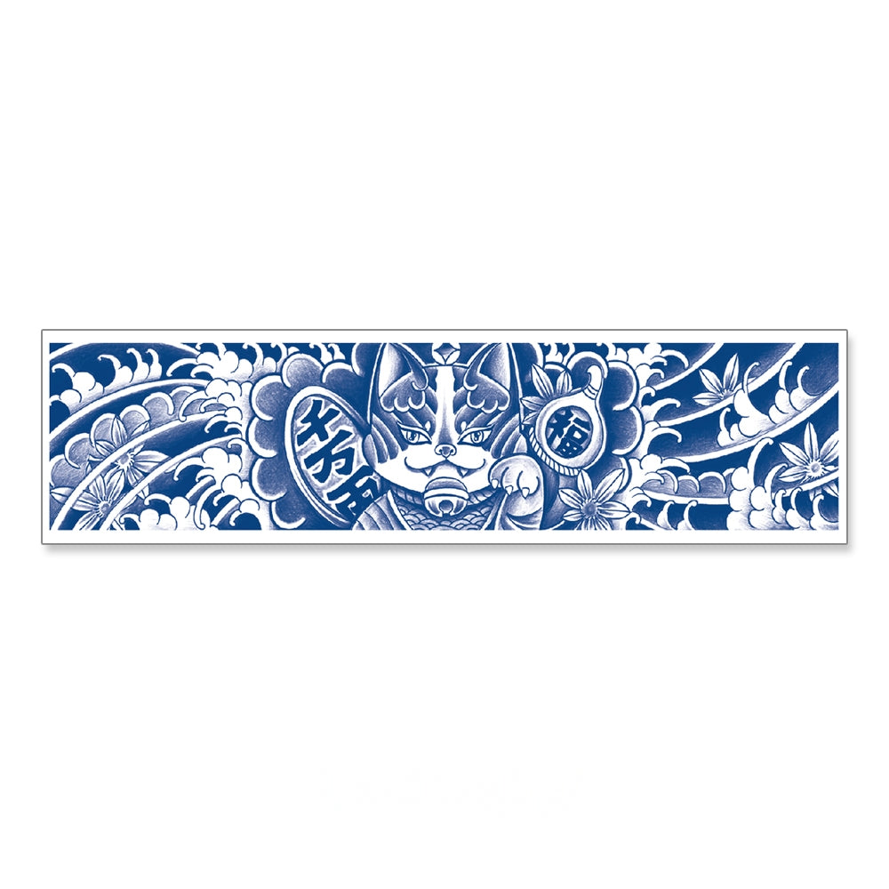 This tattoo features a powerful interpretation of the Maneki-neko (beckoning cat), surrounded by waves, clouds, and blossoms. With its fierce gaze and raised paw, it symbolizes good luck, protection, and prosperity—drawing blessings while warding off misfortune.