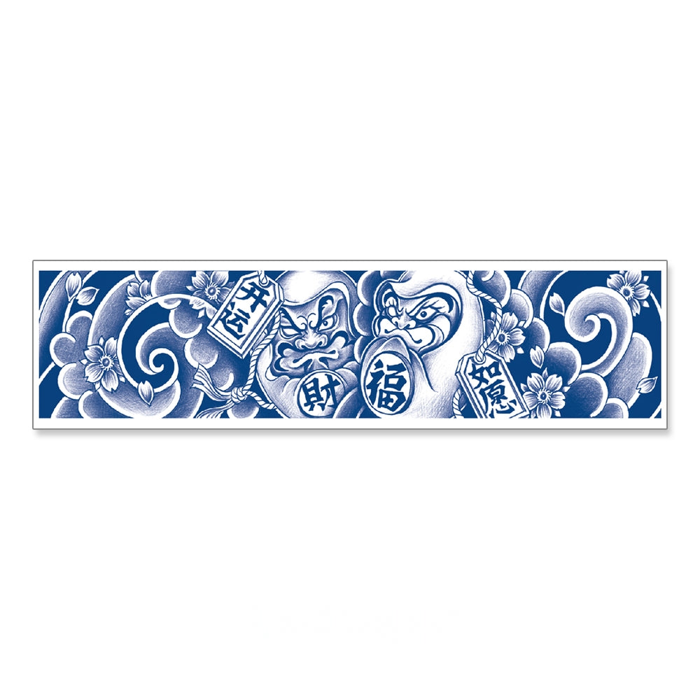 This armband tattoo shows fierce guardian faces surrounded by swirling clouds and blossoms, symbolizing strength, protection, and the flow of good luck and prosperity in life.