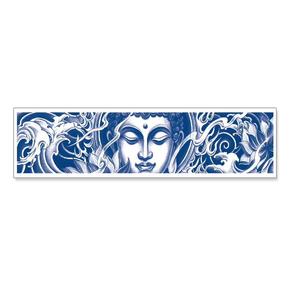 This armband tattoo features a tranquil Buddha face surrounded by lotus flowers and flowing waves, representing harmony, spiritual awakening, and the calm strength that comes from within.