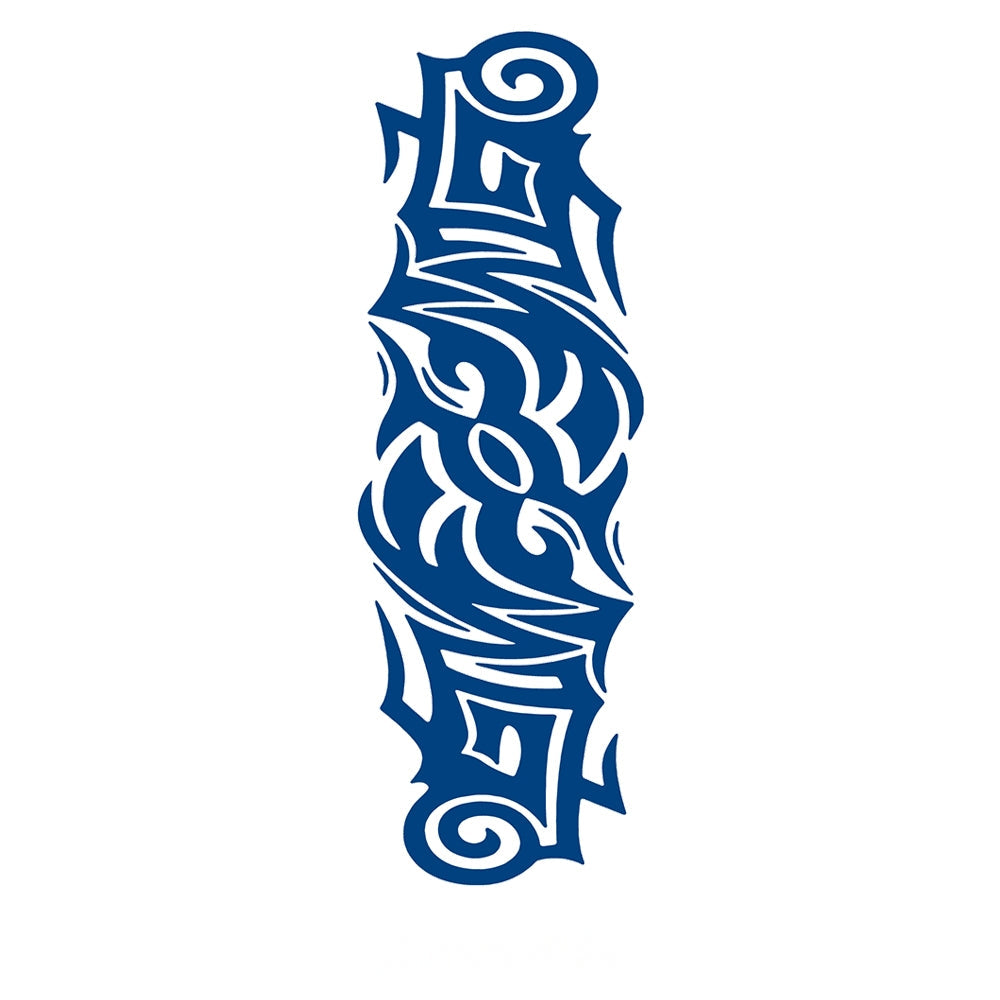 This full-sleeve tattoo draws inspiration from ancient tribal art, embodying strength and spiritual connection. The symmetrical patterns represent unity and balance, while the central eye-like motif signifies awareness and protection. A bold design for those who carry the spirit of warriors and leaders, honoring both tradition and individuality.