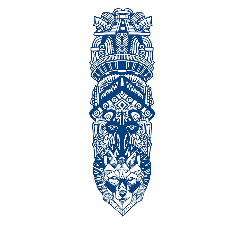 This striking full-sleeve tattoo features a majestic wolf at its core, symbolizing strength, wisdom, and guidance. The geometric patterns represent harmony between instinct and intellect, while the towering tribal structures above evoke ancient power and protection. A perfect design for those who embrace their inner warrior and lead fearlessly through life’s wild paths.