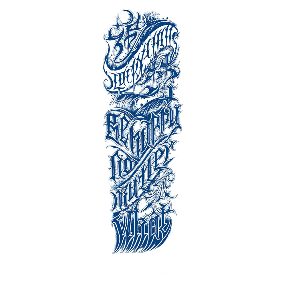 This bold full-sleeve tattoo showcases an intricate calligraphy design, blending flowing curves with powerful lettering. Every stroke symbolizes personal expression, resilience, and identity. Perfect for those who carry their story in art, this piece transforms words into a timeless emblem of individuality and meaning.