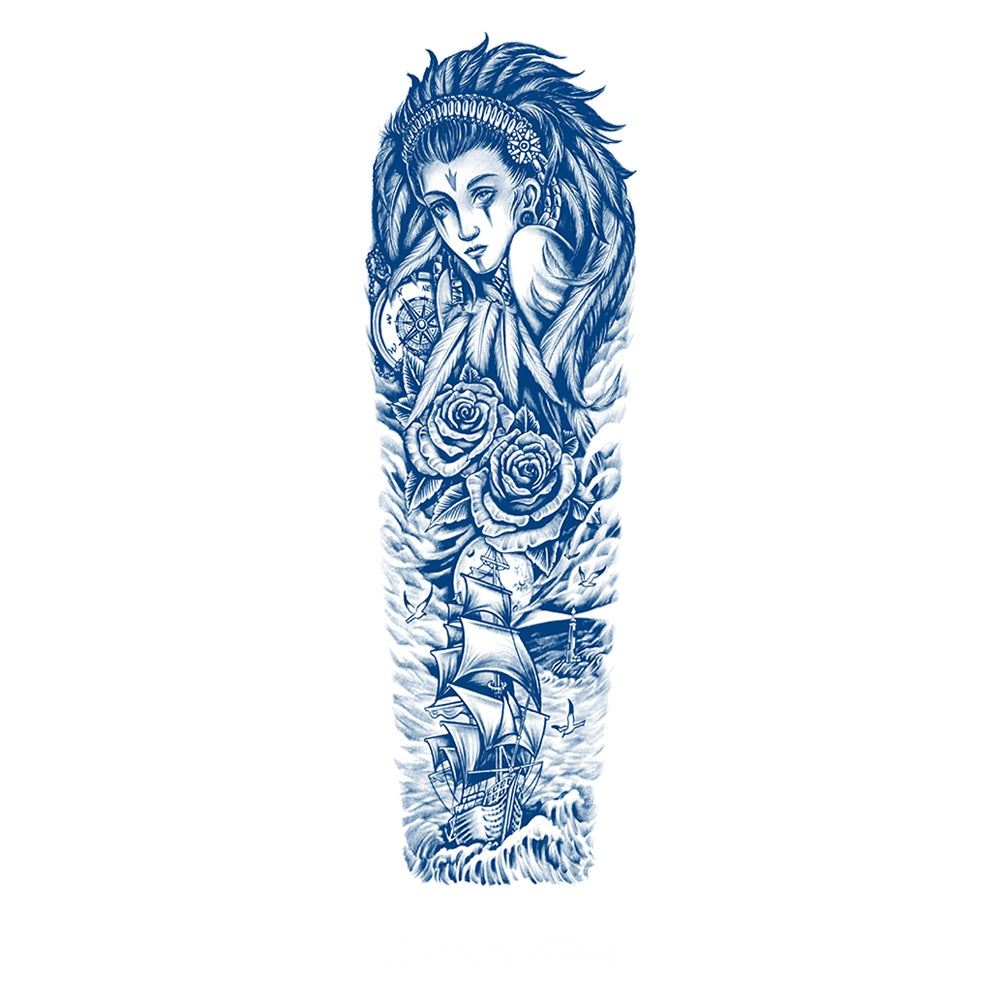 This captivating full-sleeve tattoo features an enchanting siren surrounded by roses, embodying beauty, allure, and hidden strength. Below, a majestic ship braves turbulent waves, symbolizing exploration, resilience, and the pursuit of freedom. A perfect piece for dreamers, wanderers, and those whose souls are tied to the ocean’s eternal secrets.