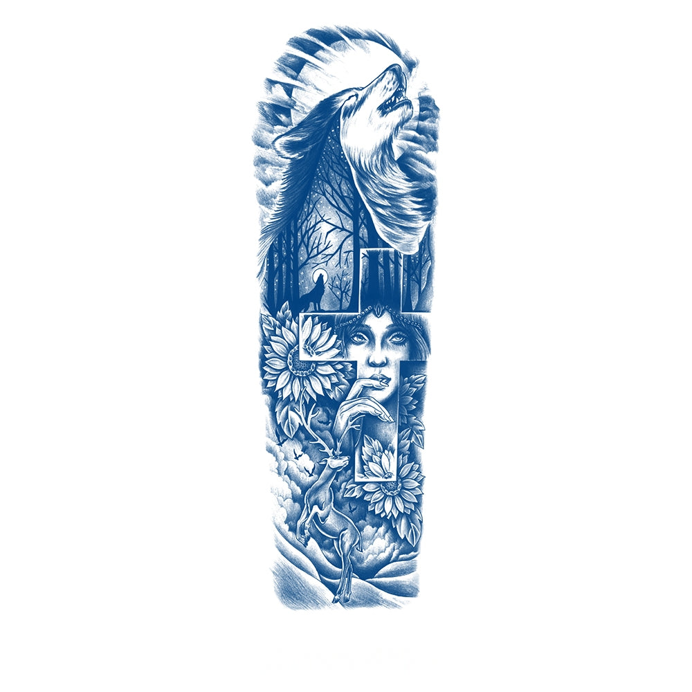 A mystical design featuring a howling wolf, a serene maiden, and a graceful deer surrounded by blooming flowers and enchanted forests. This artwork captures the essence of freedom, inner strength, and harmony with nature — perfect for those guided by instinct and wild beauty.