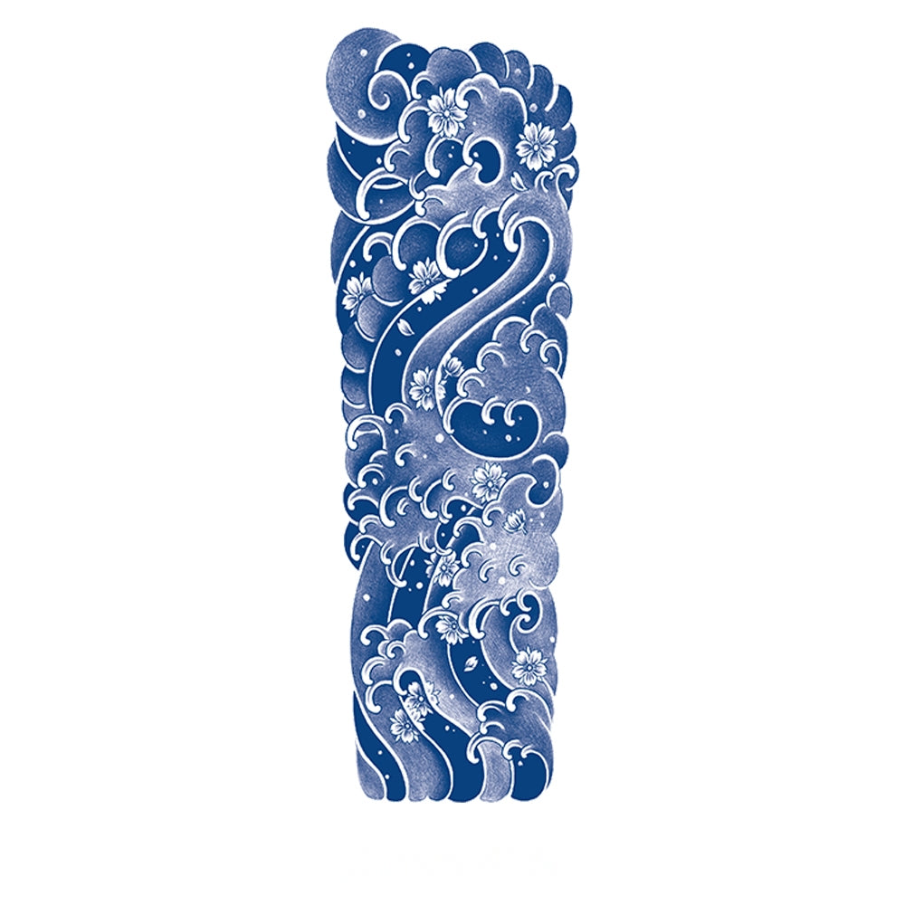 Graceful waves intertwine with delicate blossoms, representing the flow of life, constant change, and serene renewal. This design captures harmony, resilience, and the eternal connection between earth and sea.