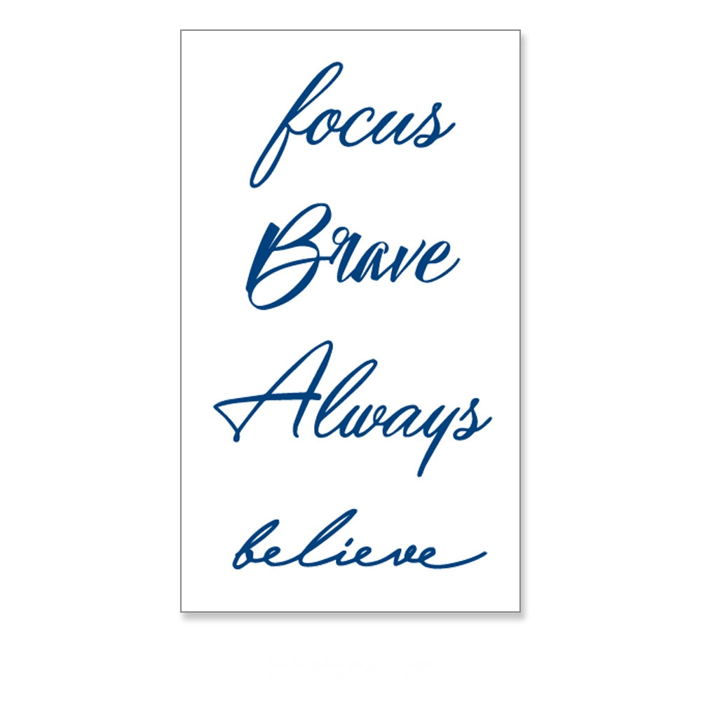 Elegant script spelling out Focus, Brave, Always, Believe — a mantra of determination, courage, consistency, and faith.