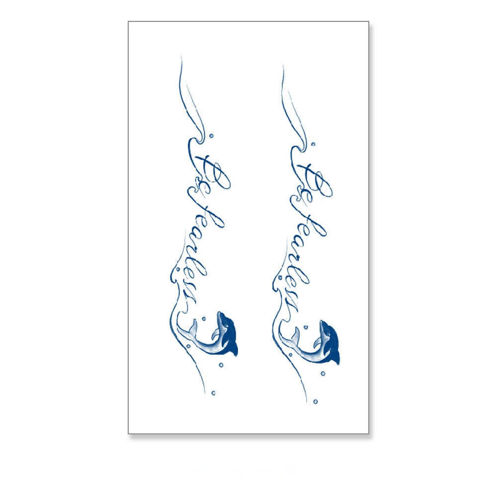Flowing script reading “Be fearless” merges with a leaping dolphin and water drops, symbolizing courage, freedom, and living boldly with the spirit of the ocean.