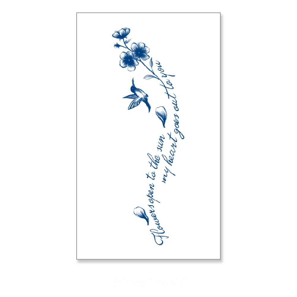 A delicate hummingbird hovers by blossoming flowers, paired with the heartfelt words “Flowers open to the sun, my heart goes out to you”—a symbol of affection, openness, and devotion.
