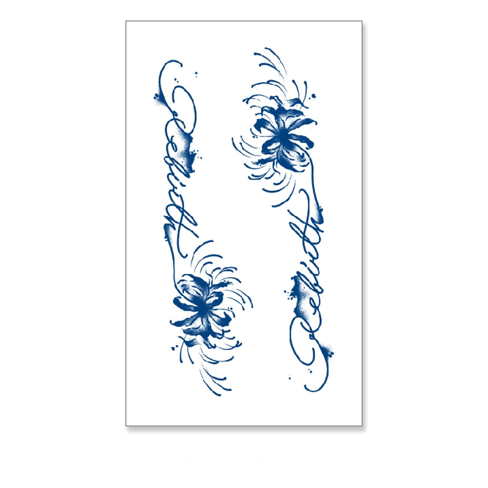 Flowing script spelling “Rebirth” intertwines with blooming abstract flowers—symbolizing renewal, transformation, and the beauty of starting anew.