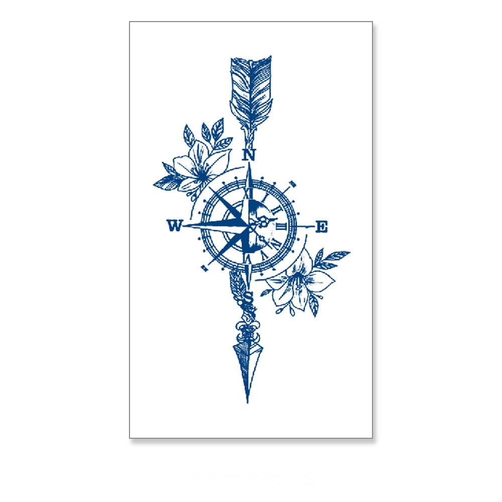 A detailed compass entwined with flowers and arrows, representing guidance, balance, and finding one’s true path with both strength and grace.