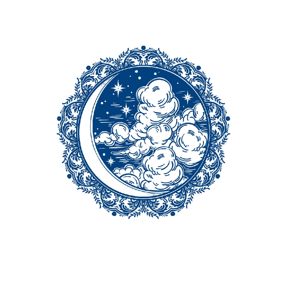 A crescent moon framed by swirling clouds and starlight—symbolizing mystery, dreams, and the quiet beauty of the night sky.