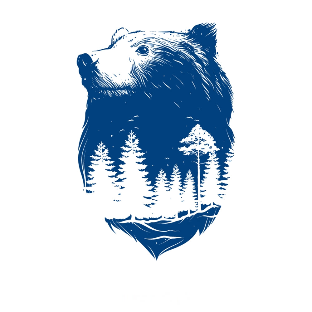 A majestic bear head blended with a forest silhouette—symbolizing power, resilience, and a deep bond with nature.