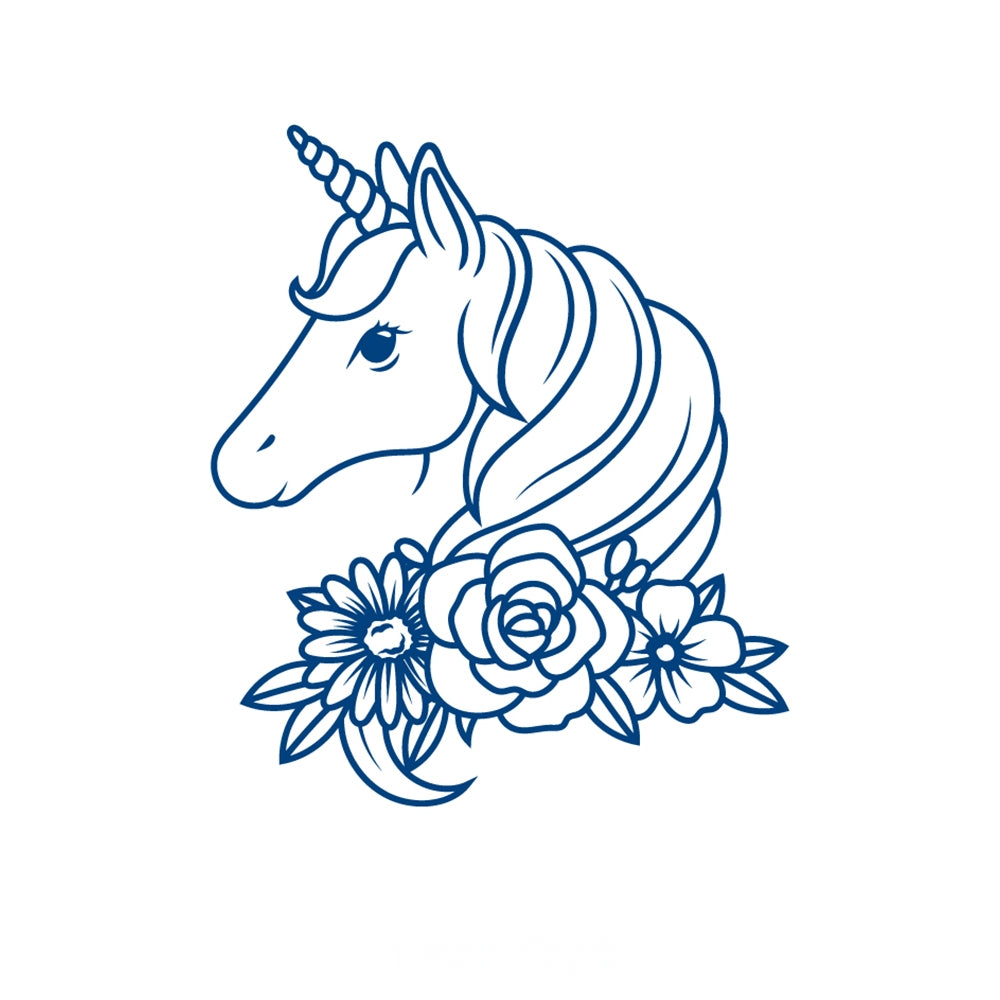 A gentle unicorn with flowing mane resting among flowers—symbolizing purity, wonder, and the beauty of imagination.