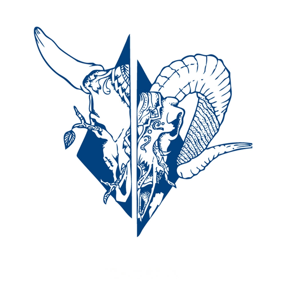 A split design of two horned skulls, one natural and one ornate—symbolizing contrast, balance, and the duality of existence.