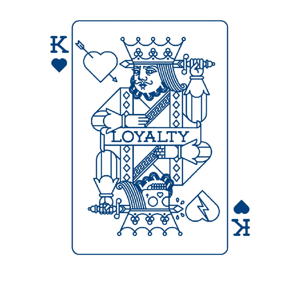 A playing card of the king holding a sword, with the word Loyalty across—symbolizing trust, honor, and unbreakable devotion.