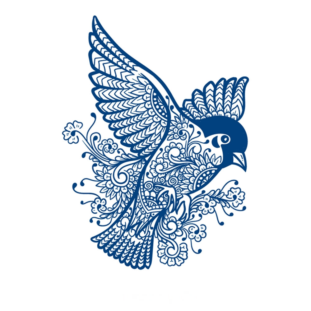 A graceful bird with wings spread, filled with floral and ornamental patterns—symbolizing freedom, elegance, and harmony with nature.