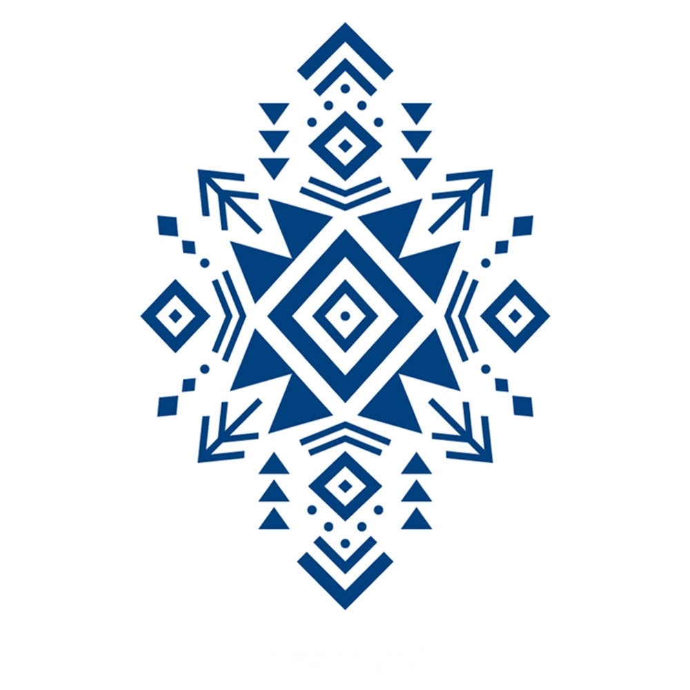 A bold geometric star made of diamonds, triangles, and arrows—symbolizing harmony, direction, and inner strength.