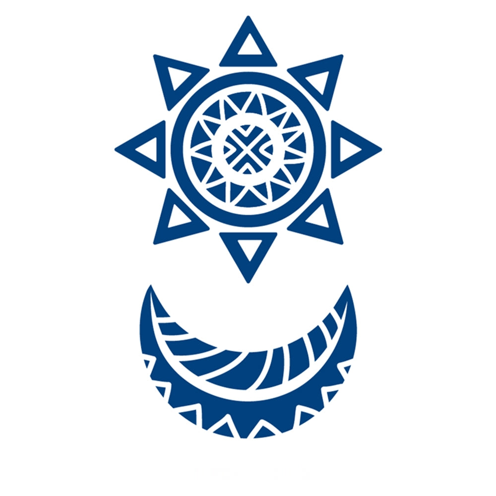 A tribal-inspired sun above a patterned crescent moon—representing duality, cycles, and the eternal dance of day and night.