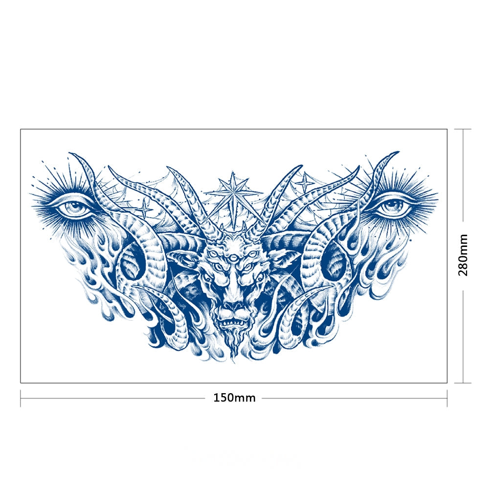 A horned demon crowned with flames and cosmic eyes, symbolizing hidden knowledge, unyielding power, and the eternal struggle between darkness and enlightenment.