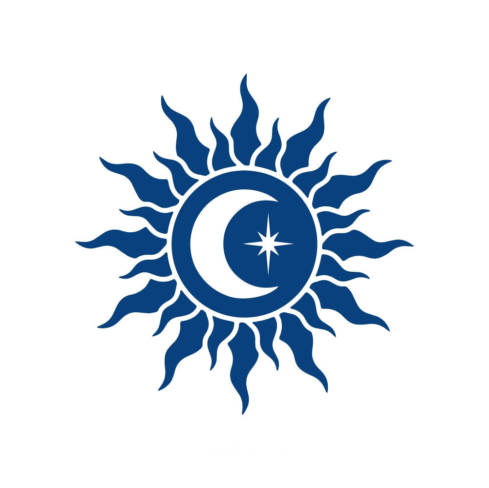 A radiant sun encircling the crescent moon and star — a timeless symbol of balance, unity, and the eternal dance between day and night.