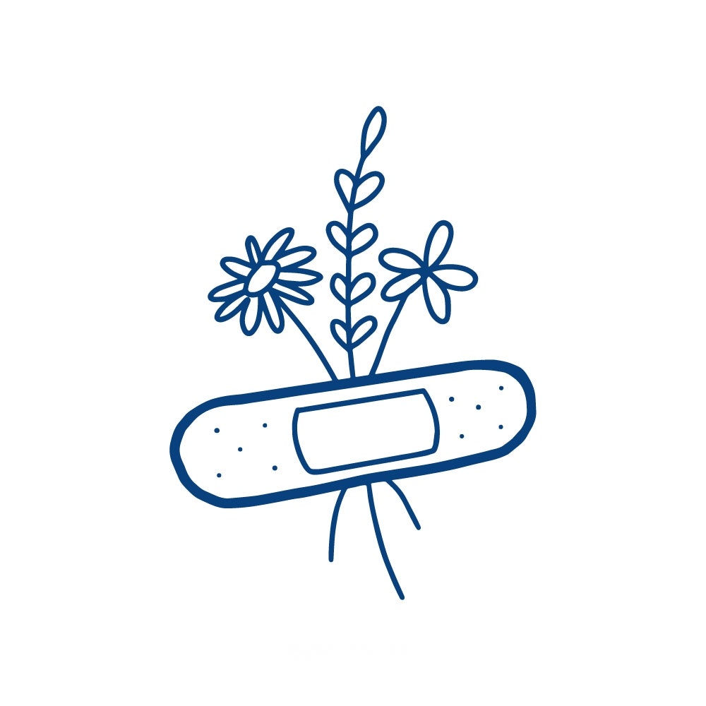 A simple bandage sprouting delicate blossoms — a symbol of healing, resilience, and the beauty that emerges from wounds.